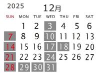 12月は日曜日も定休日となっております。